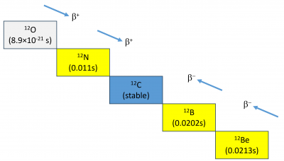 of which the first is characteristic for neutron-rich nuclides and the two latter for proton-rich nuclides.