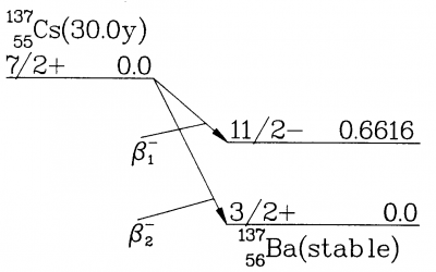 Figure V.22. Decay scheme of 137Cs (Radionuclide Transformations, Annals of the ICRP, ICRP Publication 38, Pergamon Press, 1983).