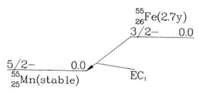 Figure V.14. Decay scheme of 55Fe (Radionuclide Transformations, Annals of the ICRP, ICRP Publication 38, Pergamon Press, 1983).